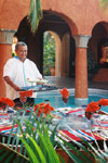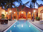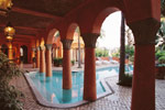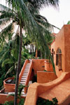 Completed in 1981, under the design of renowned Guadalajara architect Juan Munguia, Casa Arabia sits atop a granite ridge overlooking the fanciful resort of Las Hadas, named for mythical fairies that are said to dance in the Bay of Manzanillo by the light of a full moon. With hand-carved wooden doors, brick domed ceilings, arched arcades, and flowered balconies, Casa Arabia casts its own powerful spell upon all who enter. Casa Arabia combines the rustic ambiance of a rural Mexican villa with the commanding presence of a Moorish citadel.
